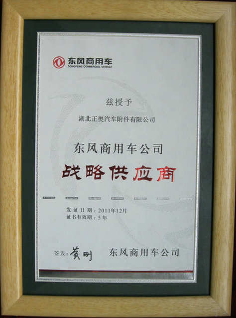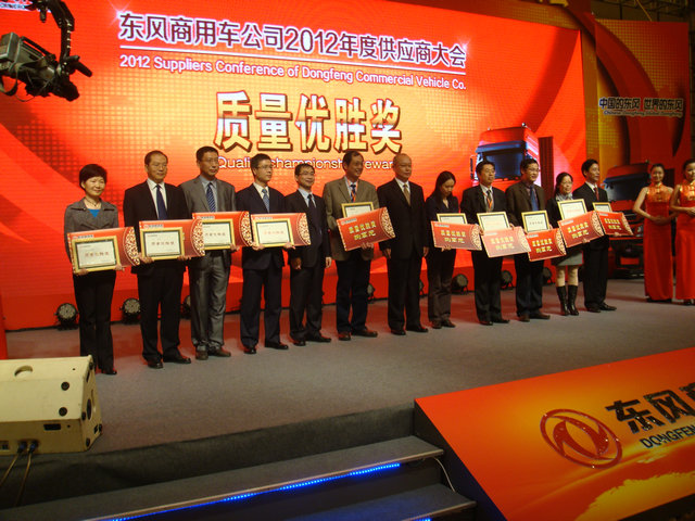 在這次盛會(huì)上,正奧公司載譽(yù)而歸,喜獲三項(xiàng)項(xiàng)殊榮,分別是:東風(fēng)商用車(chē)戰(zhàn)略供應(yīng)商、“2011年度優(yōu)秀供應(yīng)商”和“2011年度質(zhì)量?jī)?yōu)勝“。