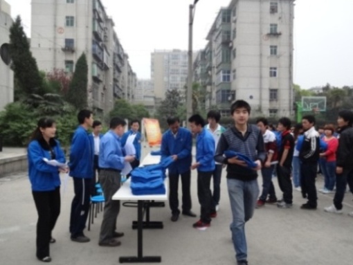 新員工排隊(duì)領(lǐng)取工作服