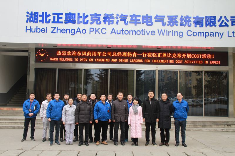 2018年1月3日,東風(fēng)汽車集團公司黨委常委、副總經(jīng)理兼東風(fēng)商用車有限公司總經(jīng)理楊青蒞臨我司調(diào)研指導(dǎo)COST活動推進情況。正奧集團黨委書記、總經(jīng)理喬虹、正奧比克??偨?jīng)理孟祥林、副總經(jīng)理王少川、邱志明對楊總一行的到訪表示熱烈歡迎,并陪同楊總一行參觀線束生產(chǎn)現(xiàn)場。